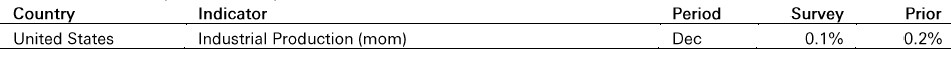 In the US, industrial production is likely to slow to 0.1% mom in December, from a 0.2% mom increase in November.