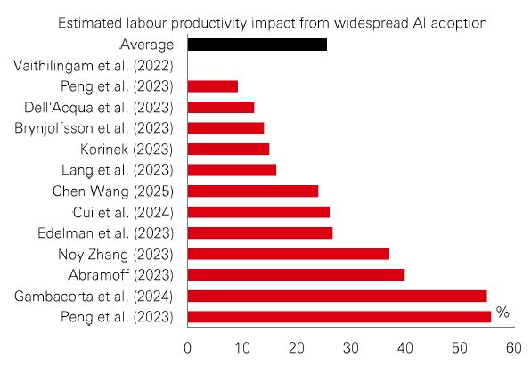 This convergence could have meaningful market implications. Generative AI is expected to deliver around 25% of productivity gains over the medium-long run, according to academic research. If middle-income economies embed these AI tools faster than their developed peers, they may capture efficiency dividends sooner. This could support equity upside in emerging and frontier markets.