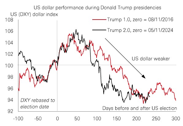 One simple answer could be that this is just history repeating itself. With the arrival of Donald Trump in the White House for a second term in office, 2025’s dollar action has tracked a similar path to the one it followed during the president’s first term. If history keeps rhyming, recent choppiness could continue for now.