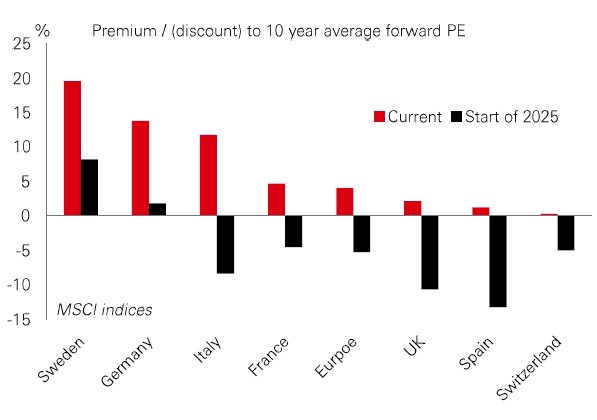 While the eurozone pauses for breath, there could be pockets of value in the south even after the recent run. Despite a strong Q3, Spain only trades at a modest premium to its 10-year average PE ratio. On a current multiple of 12x, it’s still cheaper than Germany on nearer 15x. With the strongest earnings momentum among its peers – plus the benefits of domestic strength and exposure to reinvigorated LatAM markets – there could be more to come.