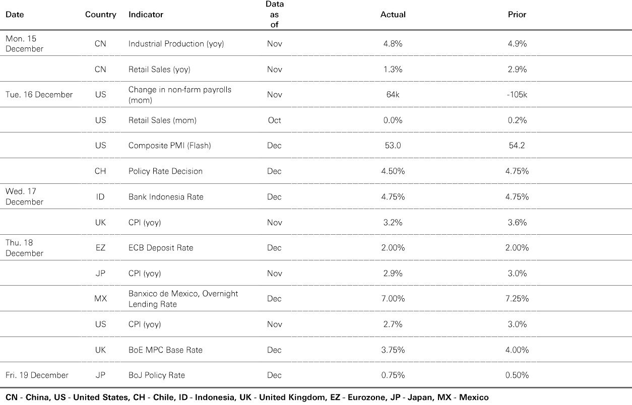 Source: HSBC Asset Management. Data as at 7.30am UK time 19 December 2025. For informational purposes only and should not be construed as a recommendation to invest in the specific country, product, strategy, sector or security. Any views expressed were held at the time of preparation and are subject to change without notice. Any forecast, projection or target where provided is indicative only and is not guaranteed in any way.