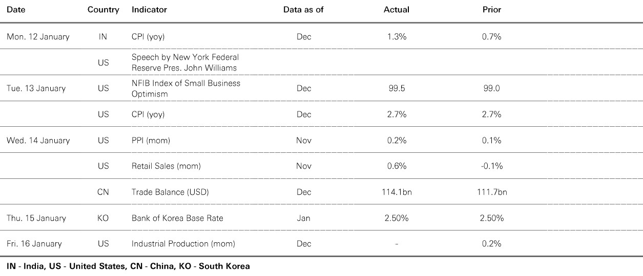 The value of investments and any income from them can go down as well as up and investors may not get back the amount originally invested. Past performance does not predict future returns. The level of yield is not guaranteed and may rise or fall in the future. For informational purposes only and should not be construed as a recommendation to invest in the specific country, product, strategy, sector, or security. Diversification does not ensure a profit or protect against loss. Any views expressed were held at the time of preparation and are subject to change without notice. Any forecast, projection or target where provided is indicative only and is not guaranteed in any way. Source: HSBC Asset Management, Bloomberg, Macrobond. Data as at 7.30am UK time 16 January 2026.
