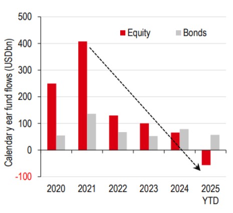 Sustainable equity funds3 have experienced net outflows of USD 57 billion year-to-date—the first recorded outflows since 2020. The US market is the primary contributor, accounting for USD 43.5 billion of these outflows as of 10 October this year. This trend is largely attributed to political backlash, waning investor sentiment towards sustainable investing, and concerns over greenwashing and regulatory changes.