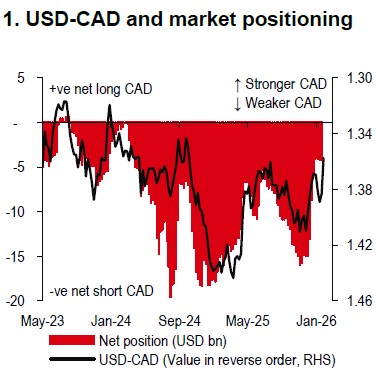 The Bank of Canada highlighted these concerns at its 28 January meeting, where the policy rate was kept at 2.25%, in line with expectations. Given these uncertainties, we maintain a cautious outlook for the CAD in 2026, despite robust domestic data that would usually support a stronger currency. Over the near term, USD-CAD could drop further, reflecting broad USD weakness, though trade uncertainty may present upward risk.