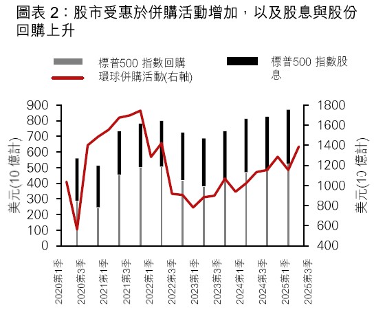 • 我們認為美國股市仍有進一步的上行空間,原因在於多重推動因素,而減息為其中之一。人工智能的迅速發展帶動整個人工智能生態系統內的活動及投資增加。基於併購活動回升、股票回購與股息穩步增長,以及樂觀的週期性展望與結構性推動因素,包括生產回流及美國再工業化,我們維持對美國股市的看好觀點,偏好資訊科技、通訊、工業及金融板塊。
