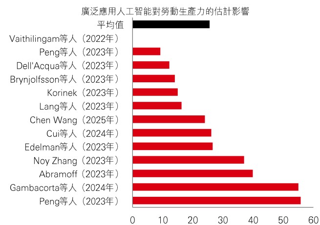 此趨同走勢或對市場產生深遠影響。學術研究顯示,生成式AI在中長期有望使生產力提升約25%。如中等收入經濟體較成熟國家更快採用這些AI工具,或可優先把握此效率紅利。這有望支持新興和前緣市場的股票升勢。