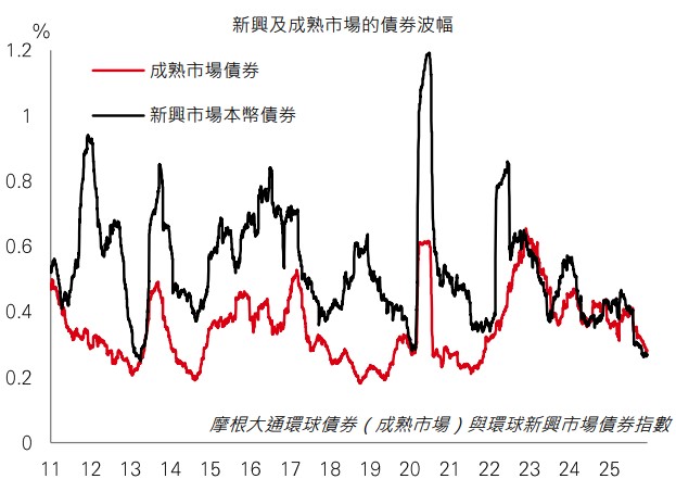 新興市場資產的優秀表現是今年投資市場的一大焦點。新興市場債券一度被視為高風險、高Beta投資策略,但其波幅現時已低於成熟市場。