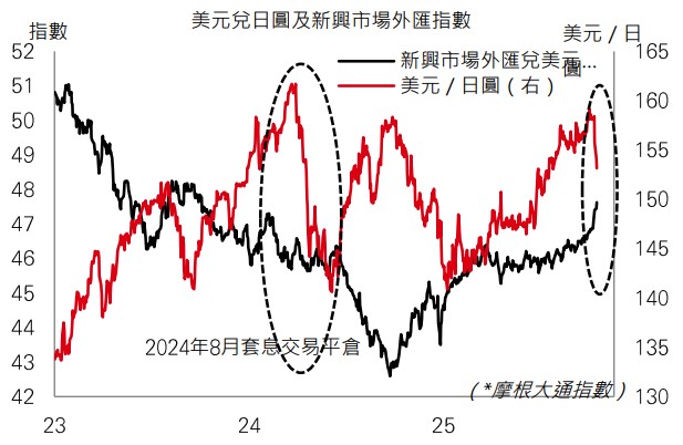 上周日圓兌美元跟隨日本長債息率急升而走強。這些走勢可能只是日本央行政策步向正常化期間的波動。但由於市場揣測政府干預,加上美元持續走弱、聯準會放寬政策、日本財政刺激措施,及相關通膨壓力,可能會令2026年最終成為「日圓之年」。