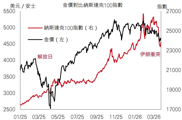 金價走勢自伊朗衝突爆發以來,與市場原先預期有所出入。按傳統邏輯,地緣政治緊張及經濟不確定性上升,理應推高金價——就如去年「解放日」期間的走勢,並有望延續過去兩年的強勁升勢。然而現實卻截然不同:金價月初至今下跌約15%。