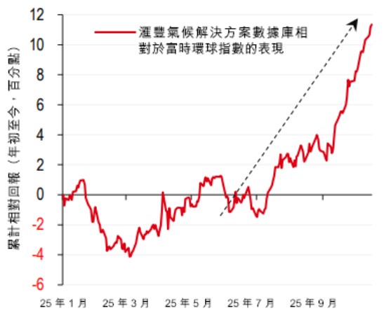 2. 滙豐環球投資研究採用 HCSD 中相關企業(該等企業至少有 10% 的收入來自氣候變化相關業務)的市值權重,計算氣候類股票的綜合價格表現。年初至今業績數據截至 2025 年 10 月 16 日。