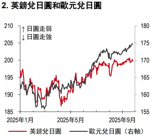 值得注意的是,9 月「點陣圖」顯示,認為2025 年第四季需要減息一次和需要減息兩次的聯儲局成員人數基本持平。鑒於市場預期聯儲局在10 月28 至29 日會議上減息的可能性約為90%(彭博資訊,2025 年9 月25 日),美國經濟數據(如10 月3 日的非農就業數據和10 月15 日的消費價格指數)的鴿派程度可能很難超出市場預期,而且若這些數據偏鷹派,美元可能出現力度更大的積極回應。