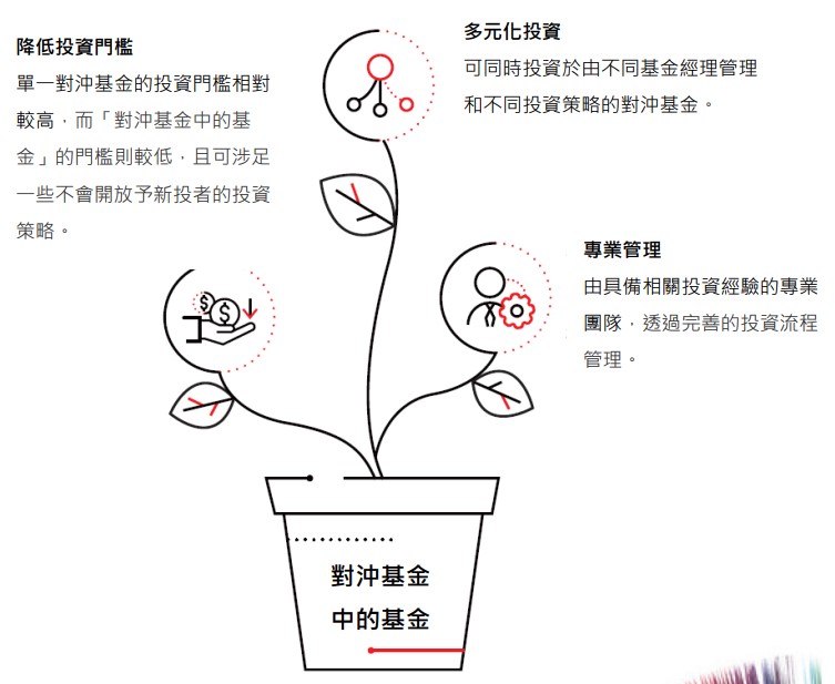 「對沖基金中的基金」致力透過策略性配置及專業管理,投資於一籃子的對沖基金,使投資者可受惠於基金經理的專才、多元化的策略及專業的風險管理,以達成資本增值的長遠目標。