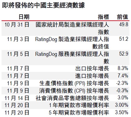 由於不利的貿易因素和持續的國內挑戰,第三季國內生產總值按年增速放緩至4.8%。9 月經濟活動數據顯示,工業增加值、固定資產投資和社會消費品零售總額等關鍵指標的表現好壞參半。得益於上半年強勁增長,前三季度整體增速達5.2%,表明全年「5%左右」的增長目標有望實現。